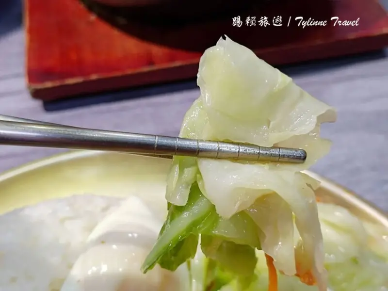 豆腐鍋上面有滿滿一層「高麗菜」,主要是在快起鍋時才放入,讓高麗菜可以保持原有的脆度