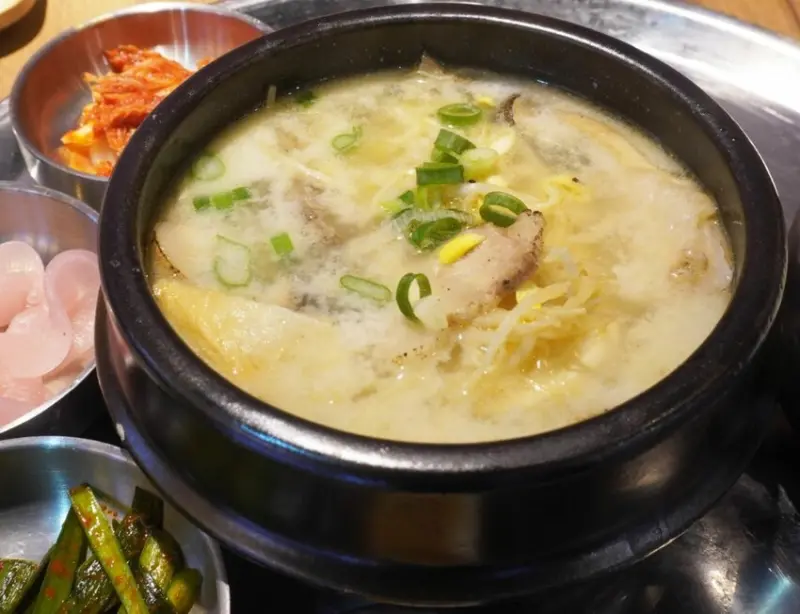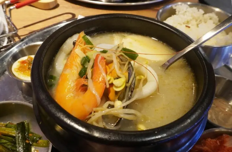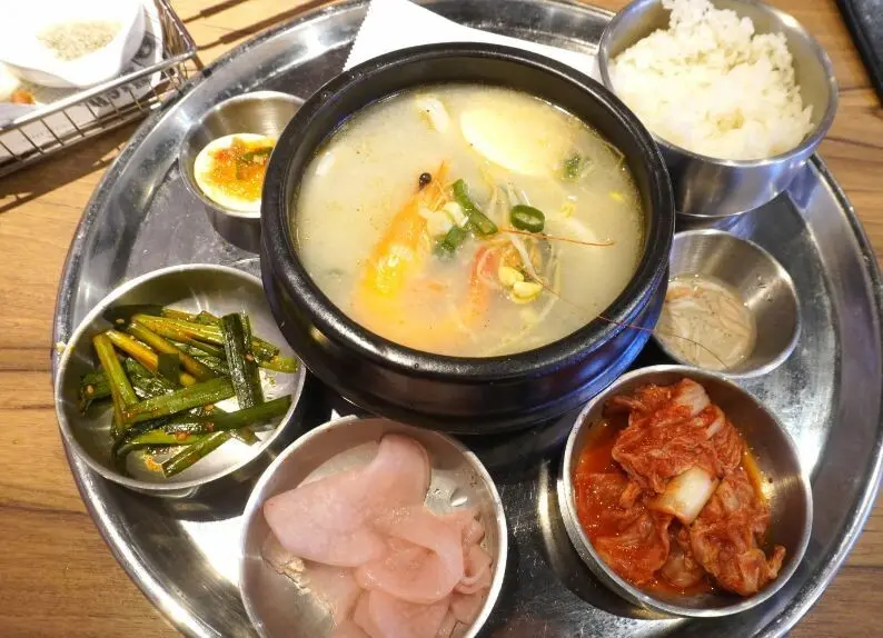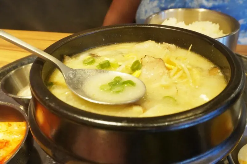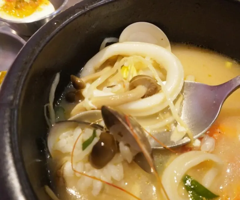 作為韓國庶民美食,很少有韓式餐廳推出豬肉湯飯,袁彬也是因為金春喜韓廚進駐基隆好食城,才注意到韓式料理有這道菜,袁彬跟母親分別點了豬肉湯飯跟海鮮湯飯。