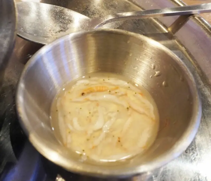 白飯口感微硬,可以放進湯內,吸附湯汁,味道會更好吃。店家還準備了生蝦醬,想要味道更濃郁的,可以加到湯飯內。