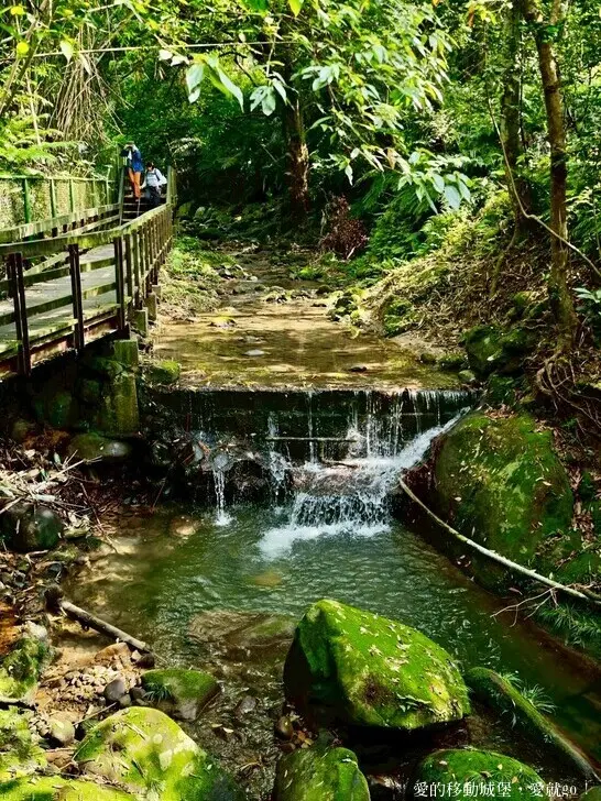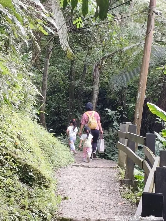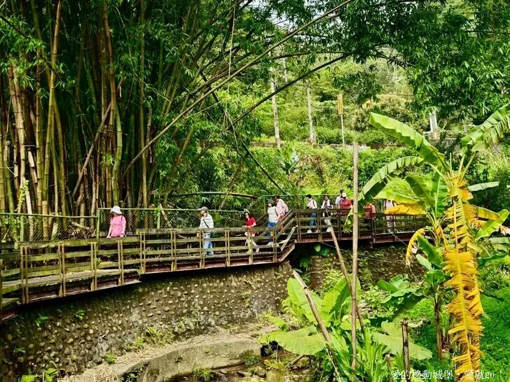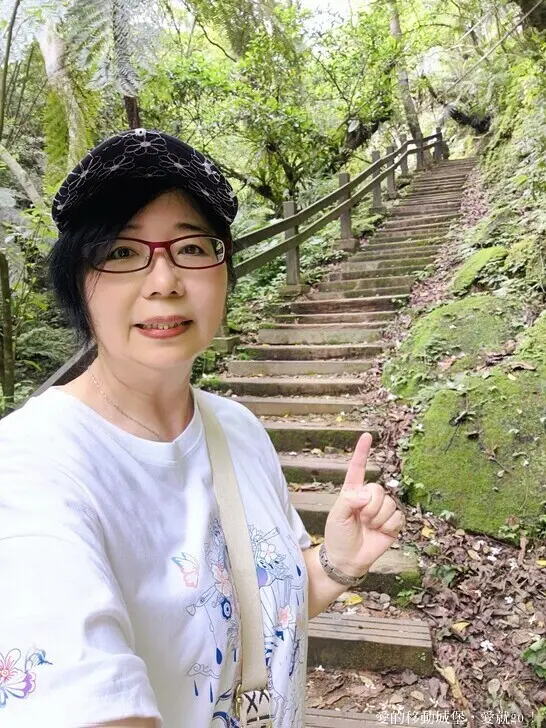 一群人踏著木棧階梯,臉都是帶著微笑呢