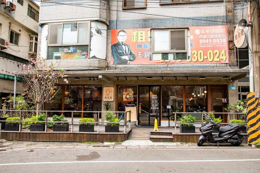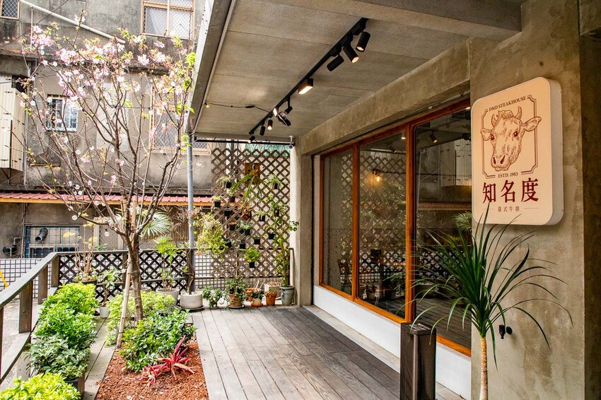 知名度牛排就位於中和南勢角附近巷子裡的台式牛排館,從南勢角捷運站4號出口走過來大約是6分鐘的距離,算是興南夜市外圍的住宅區了,從景新街過麥當勞後右轉就到知名度牛排,店面外觀很有質感,庭院處還種了一棵櫻花樹呢