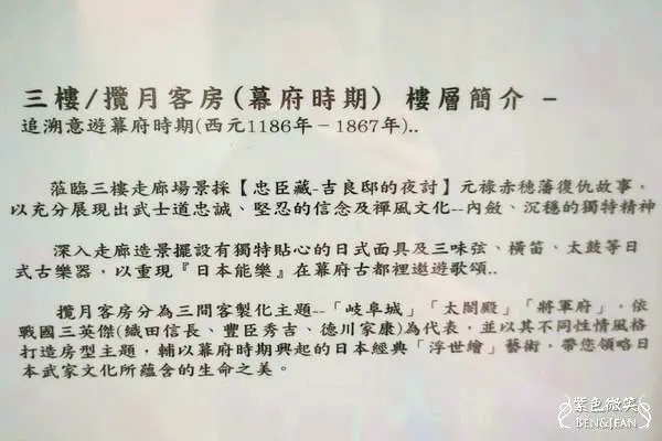 接著帶大家看看這裡的房間。這裡的房間也是一大特色。我們住的是三樓。房間的名字叫做「將軍府」。沿途的牆壁都是用日式的浮世繪圖畫來裝飾。從Check in領了我們的和服,一路踏入房間,都可以感受到濃濃的日式風情。原來這家會館最特別的是,每個樓層都有不同的主題布置。房間裡面依照不同的主題,擺設也會不一樣喔。