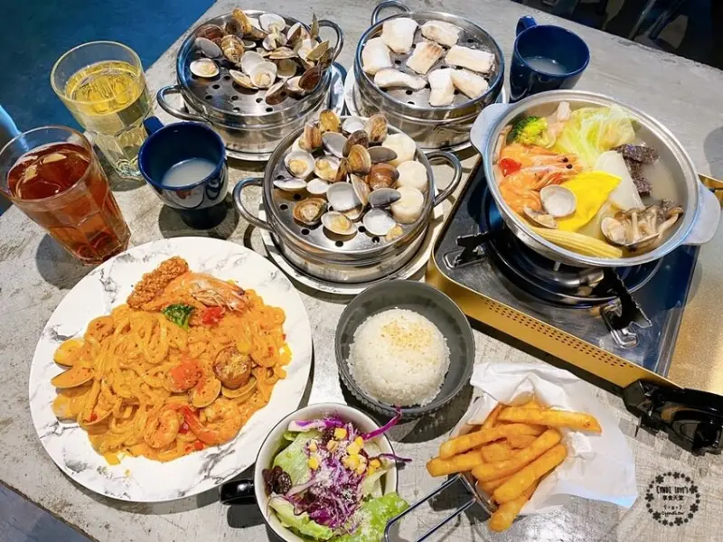 台中中友一中街平價義式,獨家Q麵/雞湯無限飲/蒸煮鍋海味十足,8德司創意餐館![]()