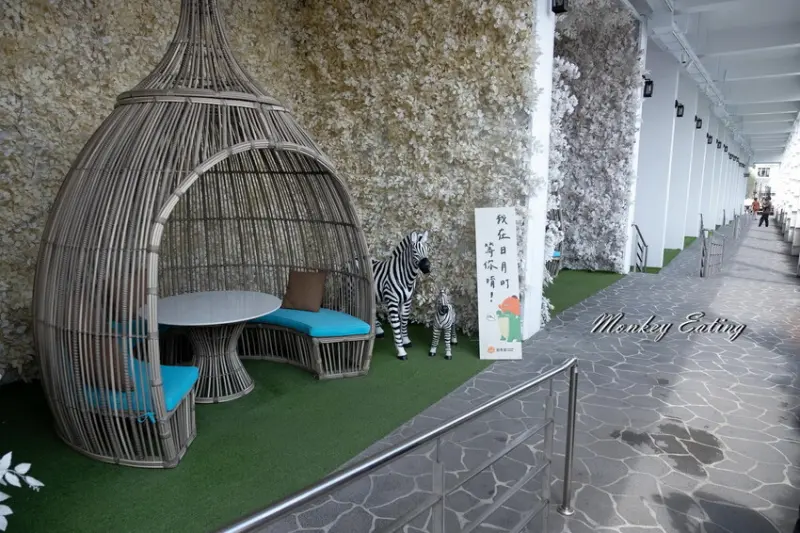 日之界是提供給遊客休息遊玩的區域,除了有廁所、販賣機,休息區的設計也別具巧思,花牆背景以及小動物裝飾,也是一個很好拍照打卡的地方。