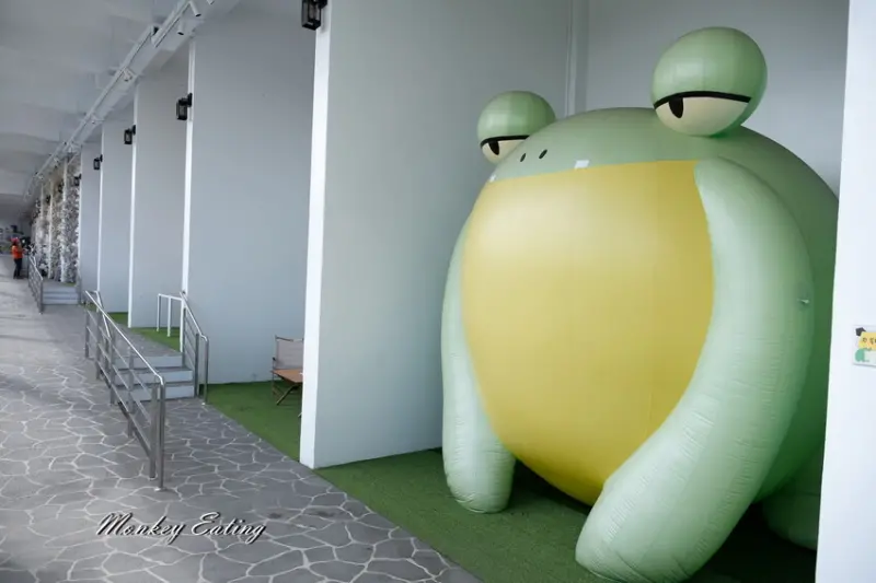 接著來到3樓,有規劃觀景台跟戶外休息區,看出去國6群山環繞的視野相當棒,樓梯口旁還有扭蛋機,專為日月町複合式商場設計的小蛙胸針,各種可愛情境造型值得收藏。