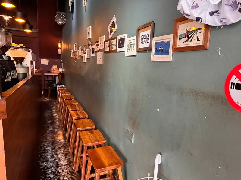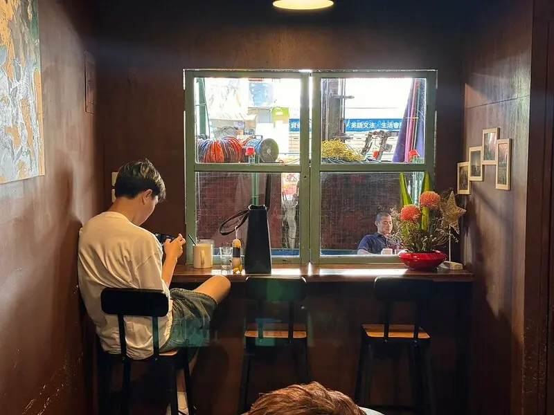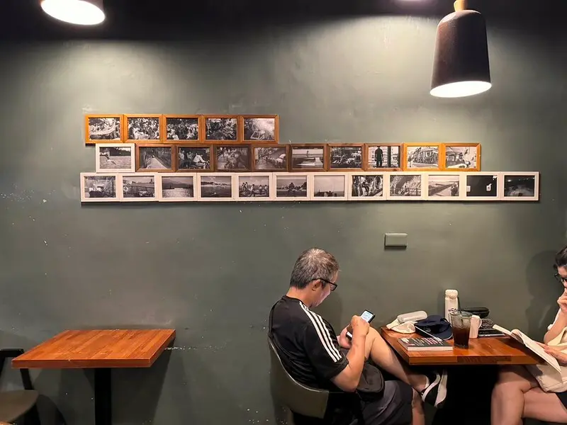 內用的環境是我喜歡的那種懷舊風格,不管是木窗還是牆上的黑白照片,廟口、夜市逛累了,多走幾步,略微離開人群在這喝上一杯咖啡也有一點鬧中取靜的氛圍。