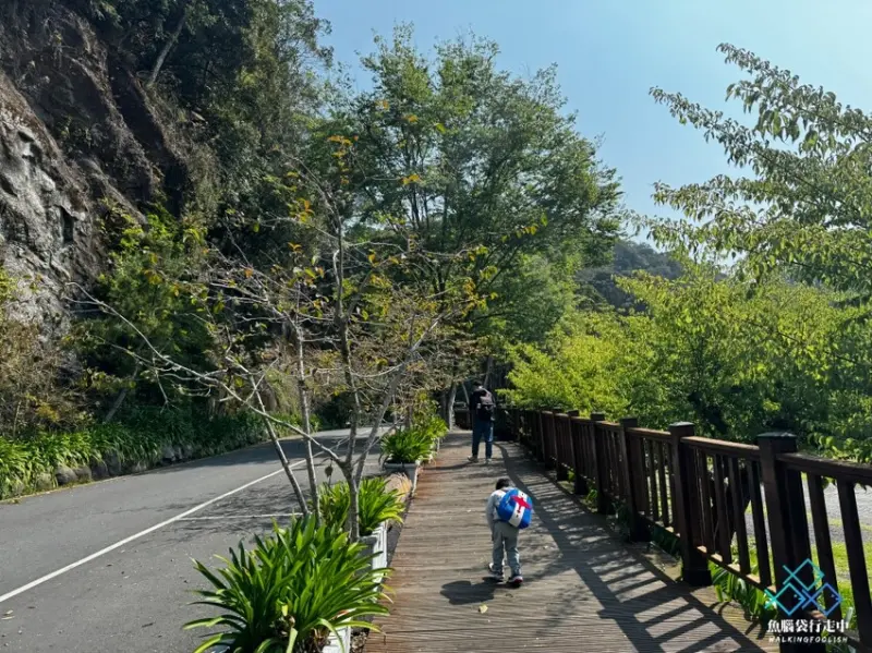 由於我們家小孩年紀還太小,對於健行「松瀧岩瀑布」或其他森林步道相對有些吃力,因此我們趁著用餐前的空檔步行到紅樓到園區大門再折返,由於車子稀少,非常寧靜,也別有一番情調。