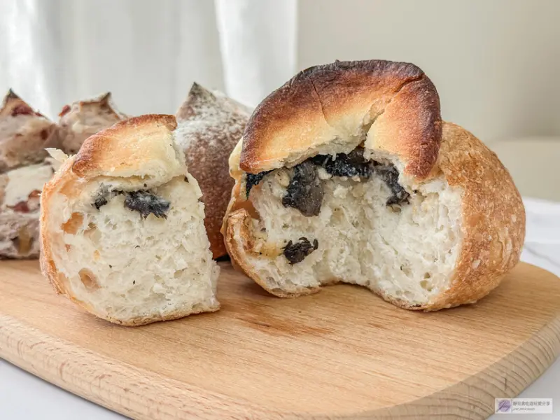 外形似蘑菇的造型,相當可愛,這是法國麵包,內餡加入了松露醬、自製白醬、新鮮蘑菇、馬鈴薯等,將松露蘑菇加入法國麵包裡超適合,回烤後外酥內鬆軟,還有著松露的香氣,吃起來不單調