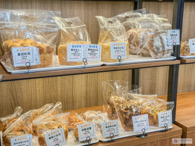 走進店裡面,空間其實不大啦。 麵包架上滿滿的擺著各種吐司、麵包產品,但因為我們比較晚到,架上剩下的品項真的不多了。 旁邊還有一些剛出爐正在包裝的,聽說有一大部分都已經被客人預訂走了,真的不誇張,相當熱銷的啦! 除了常賣款,像當季的芒果乳酪這種季節限定的也很受歡迎喔。 架上各種生吐司一字排開,那個芝麻吐司我本來想買,結果一轉個頭就被現場客人掃走了! 所以說啊,想買到心儀的口味,真的事先預訂卡保險啦!
