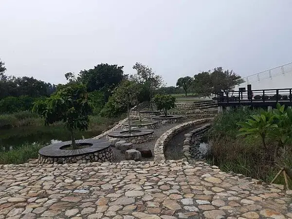 但我…我不會騎腳踏車啦。 所以大部分的人就跟著領隊一起用走的過去。 補充一下,口湖遊客中心裡面只有兩間餐廳,一間叫牧藝家,另一間就是我們等一下要去吃的魅力農店。 所以啊,如果是參加旅行團,自己帶點乾糧來會比較省錢喔。 東南旅遊這次安排的雲林口湖一日遊第一站「椬梧滯洪池」,其實就在口湖遊客中心的旁邊而已,我覺得這個安排很棒啦。