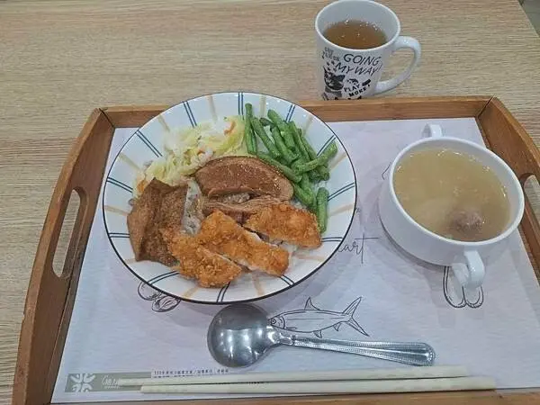 到了中午吃飯時間,我就選擇去魅力農店用餐。 我點了一份叫做「甘苦人碗公飯」的餐點,一份是180元。 老實說,看到這個價格真的讓我感到「甘苦」了一下啦。