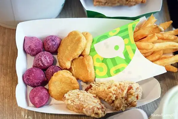 歡樂桶裡除了炸雞,還有其他也很讚的東西。辣味咔滋脆皮炸雞的麻辣香氣真的很特別,吃起來有點像麻辣湯的那種椒麻口感,香香麻麻的會讓人一口接一口停不下來。原味的就保留了秘製醃漬的鮮甜原味,每一口都能吃到雞肉本身的美味。咔滋薯霸是炸物控的最愛,外酥內軟的口感讓人很滿足。紫金QQ球很適合當飯後的小甜點,QQ的地瓜口感吃起來很滿足又不會膩。