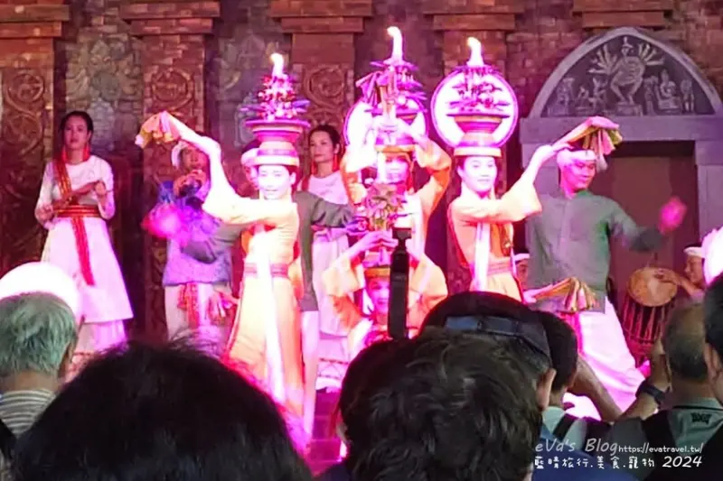 除了可以看古蹟遺址還可以看到占婆傳統舞蹈表演,大約15分鐘的表演,因為沒有人解釋這跳的代表的是何意,只能自己意會,這一段段的舞蹈表演我覺得帶著莊嚴感、有著對神靈的崇敬感,還有一個像是吹嗩吶的表演者氣超長真是太厲害了!