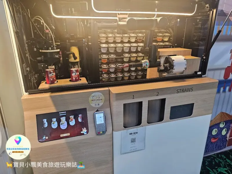有吃拉麵當然也要有喝的啊。 台灣最具代表性的就是手搖飲了嘛。 自助飲品機當然也要來點一杯囉。 它們的品項選擇相當多元喔。 部分商品還可以選擇無糖。 強烈建議你一定要加點珍珠。 可以讓口感更豐富啦。