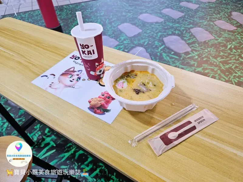 現場有兩台無人自助拉麵機。 還有一台無人自助飲品機喔。 旁邊還有提供座位區可以坐著吃東西。 不過位子數量不多。 如果是尖峰時間來可能需要等一下才有位子喔。