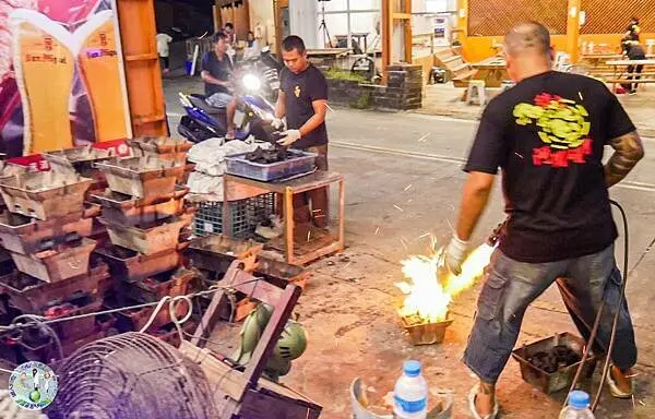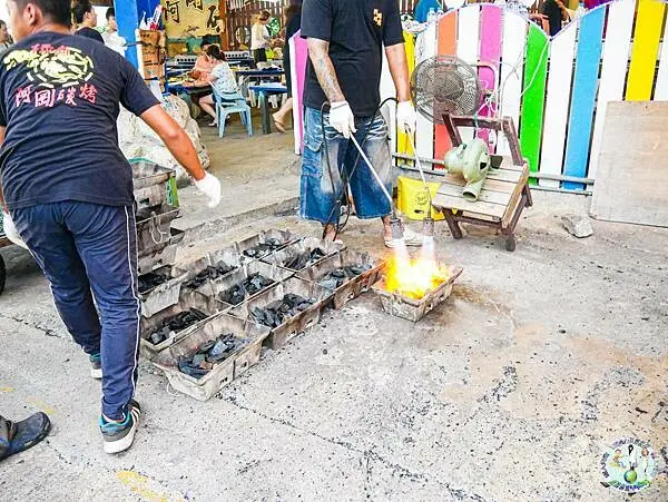 「阿剛炭烤」在上木炭之前,會先幫你燒紅了再給你用耶。我覺得這真的超貼心的。因為我們常常在外面吃燒烤的時候,都還要自己等木炭燒紅才能開始烤,這樣能真正吃到食物的時間就變少了。但是來這裡,木炭一來就是紅的,可以直接開烤,超讚的啦。