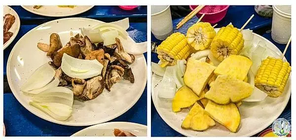 這裡的食材選擇也很多元喔。除了各種肉品之外,蔬菜的選擇也超多。像是香菇、玉米、洋蔥、青椒、南瓜、豆干等等,應有盡有。