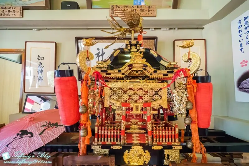 德島天神社的主社內部給人一種非常寧靜、莊重的感覺。當你進入主社時,首先會看到一個古老而堅固的木製神殿,周圍環境幽靜,充滿了自然的氣息。神社的內部簡潔而具有傳統日式建築的特色,屋頂上裝飾著典雅的瓦片,金色的神輿神像和供奉的神明菅原道真像則顯得莊嚴而神聖。主社裡的氛圍讓人感到非常寧靜,適合靜心參拜,無論是祈求學業、事業的順利,還是感謝神明的保佑,這裡都能提供一個安靜的空間來進行祈願。每個角落都透露著傳統文化的底蘊,讓你不僅能夠感受到神社的精神和力量,也能體驗到日本深厚的宗教氛圍。
