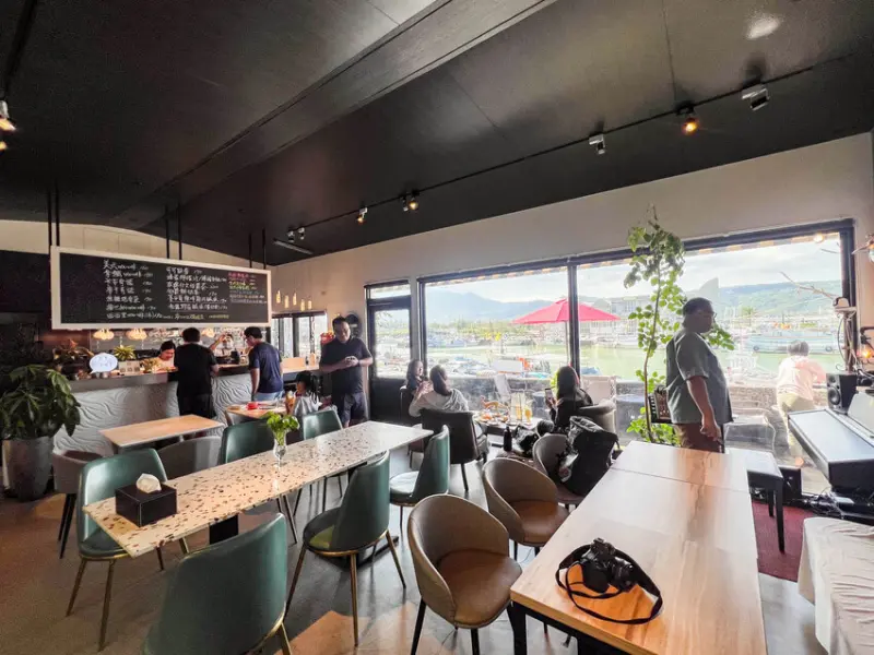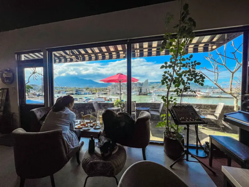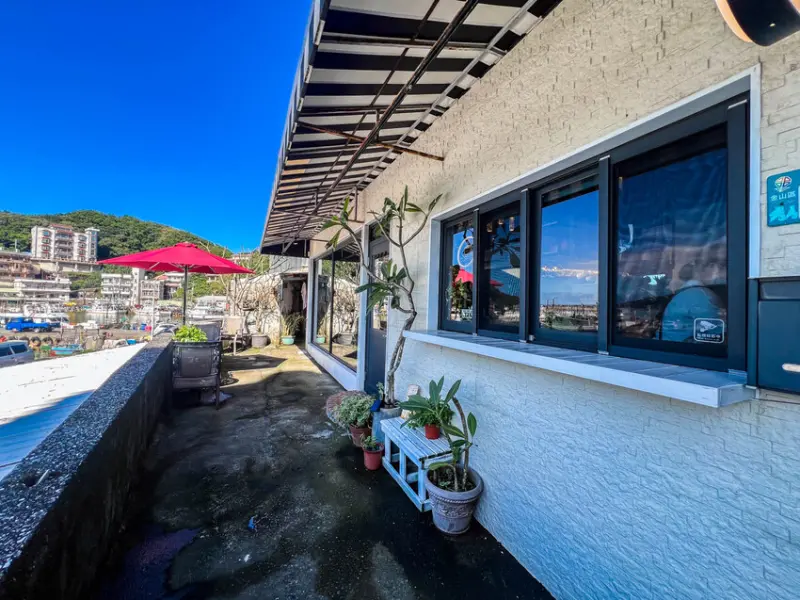 「海上日出磺港2號店」的位置蠻妙的。從馬路上往上看,你可能還會以為這是一般住家的二樓耶。你需要從旁邊的階梯走上去。不過啊,一走上去你就會瞬間明白,為什麼老闆會選在這裡開店了!因為「海上日出磺港2號店」的視野真的超棒的啦!從店裡看出去,就是那種超美的小漁港風景,現在要找到有這種小漁港景色的景觀咖啡廳已經很不簡單了。加上這裡很少有觀光客會來,所以特別安靜,不會有那種很重的商業感,這點我個人超喜歡的!