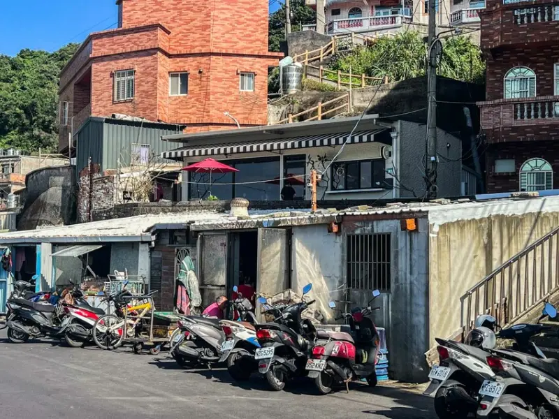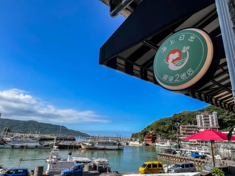 海上日出磺港2號店位於金山老街附近的磺港漁港,因為這條路是死巷子,所以觀光客並不多,開車來也相當方便,隨便停在路邊白線就可以了,據說這裡原本是山裡海里咖啡廳,後來店主搬遷,才由屋主接手並開設了海上日出磺港2號店