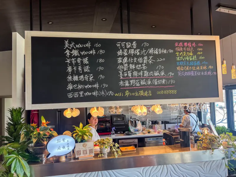 海上日出磺港2號店的菜單,主要以咖啡和甜點為主,網路上有不少人推薦他們的鹹派,聽說口味相當不錯。不過那天我們已經吃過正餐,因此沒有點鹹食。這裡的消費規定是一人最低消費200元,最後的總金額如果除以人數大於200元就可以了,並且不收取服務費,店內用餐限時兩個小時唷