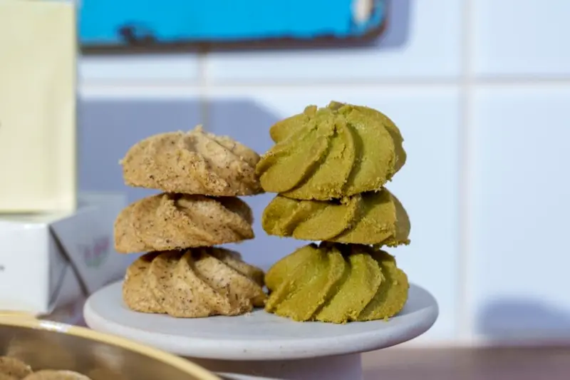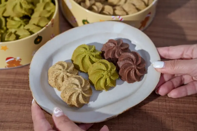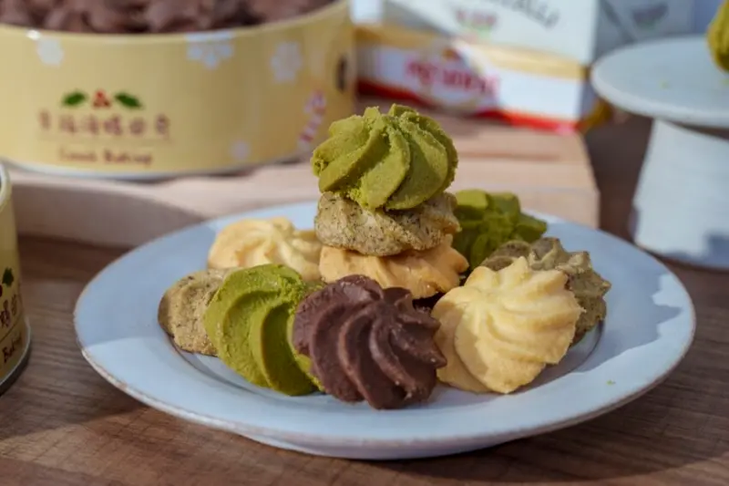 這次啊,我一口氣品嚐了四種口味的曲奇喔,分別是奶油曲奇、巧克力曲奇、抹茶曲奇和伯爵紅茶曲奇啦,每一種曲奇都有各自獨特的風味喔!