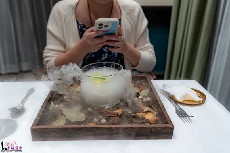 這甜點真的很夢幻,煙霧在眼前環繞,真的視覺上的饗宴。
