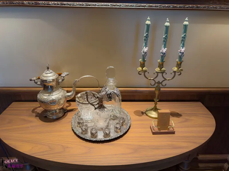 至於這幅畫的內容故事啊,作者說會在下一篇文章再跟大家介紹喔。畫作前面啊,擺放的餐具是1928年保留到現在的喔,聽起來超有歷史的啦,而且看起來超級精美的耶。