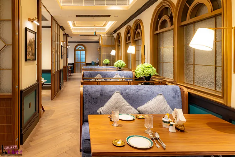 餐廳座位區的裝潢啊,是木質調的喔,搭配上柔柔的燈光,整個很有復古的氛圍。如果你不太想被打擾的話啊,也可以預訂他們的包廂喔,作者說還蠻喜歡這裡的包廂風格的耶。