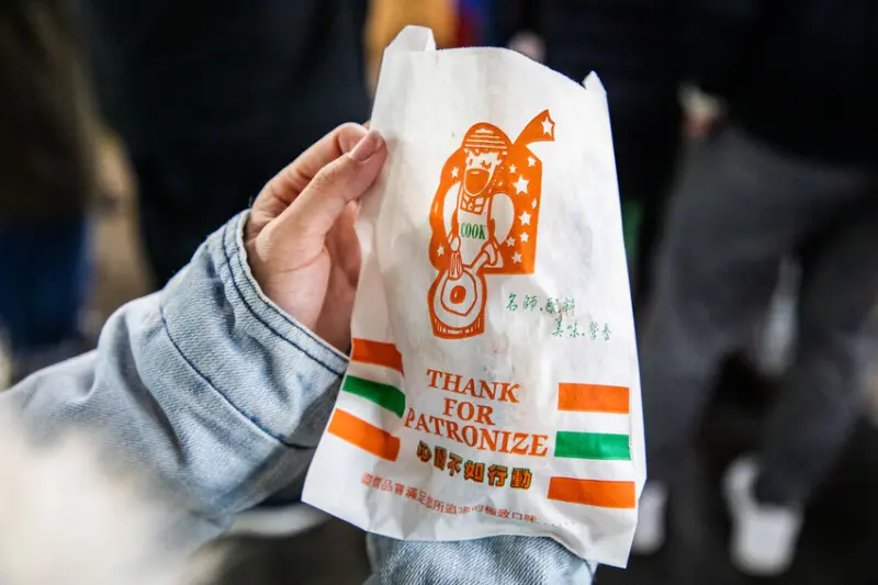 排了好久終於拿到傳說中的南機場土耳其沙威瑪,我買的是小份的,剛拿到手真的很燙,他們家的沙威瑪用的麵包也跟一般的不太一樣,外面是有嚼勁的那種口感,烤過的地方會有脆脆的口感跟香氣,應該是目前吃過最好吃的沙威瑪麵包