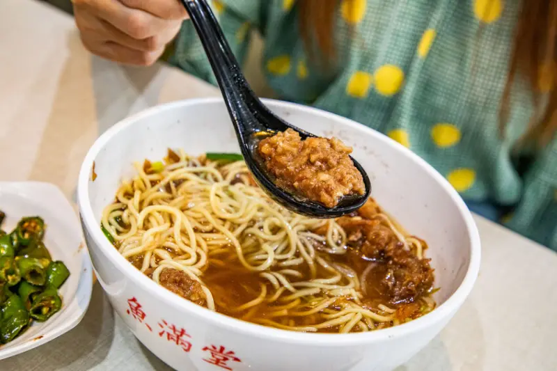 魚滿堂豐原排骨麵是在地營業超過30年的老店,以前在市場擺攤,後來才搬到現在的位置,我們大概11:00出頭來,都還沒用餐時間就已經排成一大串!生意真的是超級好啦
