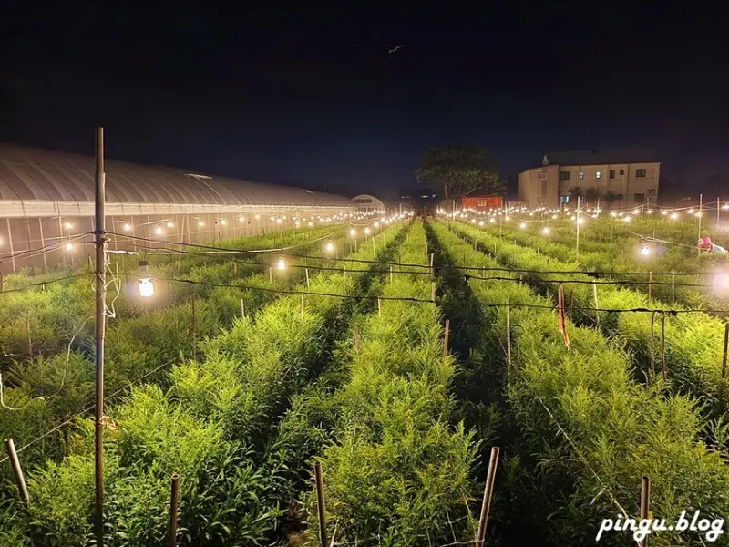 到了田尾更不能錯過夜間的美景,電照田的風光在田尾也看的到,農民利用燈光照明加長光照時間抑制花芽分化與發育,以控制開花的時間,所以儘管是鄉間道路卻亮如白晝,很少人在夜間還停留在田尾,夜間在鄉野小路間散步,讓夜風輕拂臉龐,聽著遠處傳來的蛙鳴,感受一份屬於田尾之夜的美好,為這次的小旅行留下珍貴的記憶!!