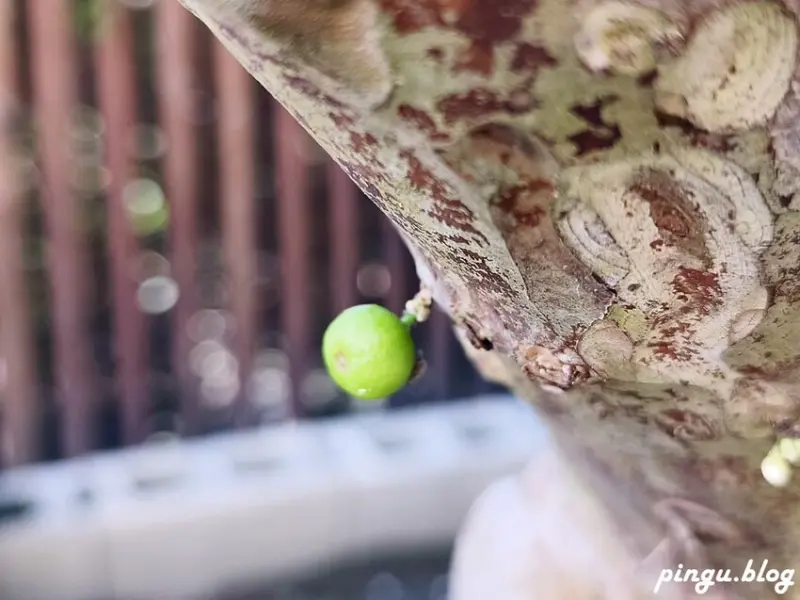 我們這半天的旅程就從「拾捲。maki dessert」開始啦!這裡最有名的就是「樹葡萄霜淇淋」了,是來這裡一定要點的招牌!坐在庭院的休息區,馬上就可以感受到田尾的綠意,庭院中間還有一棵好大的樹葡萄樹,可惜現在不是產季,只能看到花跟綠綠的果實,不過第一次看到樹葡萄的花,覺得挺新奇的呢!