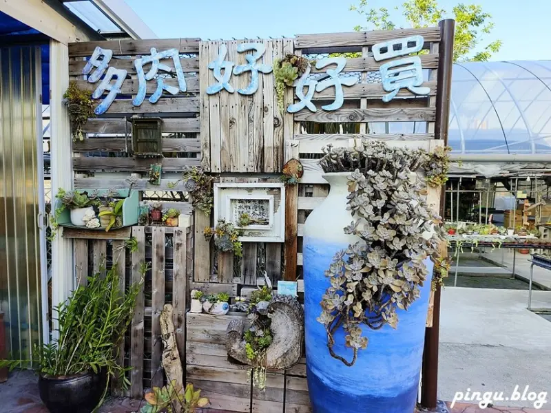 荷蘭花園不僅有各式各樣的多肉植物,後方還有藍白色地中海多肉庭園,搭配藍天白雲讓人彷彿置身於荷蘭!!戶外的多肉經過精心雕塑後也是一盆盆美麗的風景,不僅有創意拍起來也很美~~