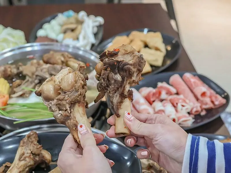 羊肉吃到飽當然要專攻羊大骨、羊腳筋啦!羊大骨不僅羊肉香氣濃郁,膠質豐富也是吃的重點,想吃骨邊肉的鮮甜就要專攻它,店家貼心的準備習慣,可以好好的品嚐羊骨髓的鮮美!完美實現羊大骨的乾杯自由!羊腳筋的膠質真的太厲害!膠質充沛滑嫩有嚼勁,Q彈的滋味越嚼越香,而且同樣可以吸骨髓,暢吃的爽快真的是太幸福啦!