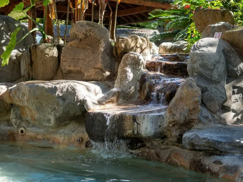 整體都是峇里島渡假風,有很多不同溫度的溫泉池、SPA水療池、蒸氣室、烤箱,還有湯屋以及溫泉魚,設施相當齊全