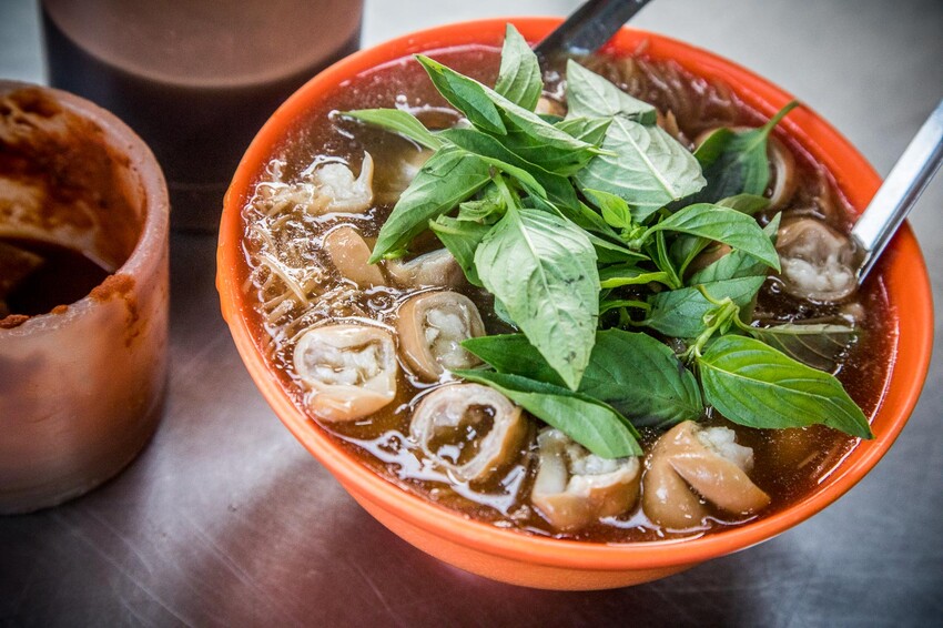 老實說龍濱大腸麵線給我第一個印象就是大腸很多,幾乎每一口都能吃到大腸,但口味上是屬於比較清爽的,個人比較偏好重口味的麵線,所以我要自己加很多醋跟辣椒,放九層塔味道也很獨特,如果愛吃大腸的朋友龍濱大腸麵線你應該會很喜歡!