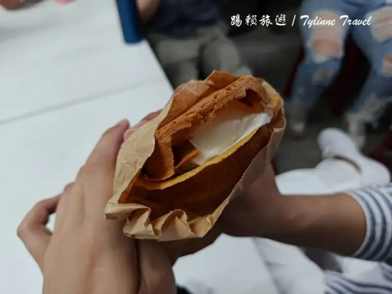 第一個是「冰淇淋脆餅」,就是紅豆餅外皮裡面包冰淇淋,要盡快吃完不然裡面的冰淇淋會被溫熱的外皮給融化掉