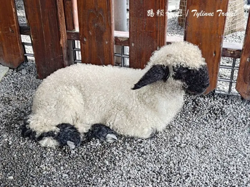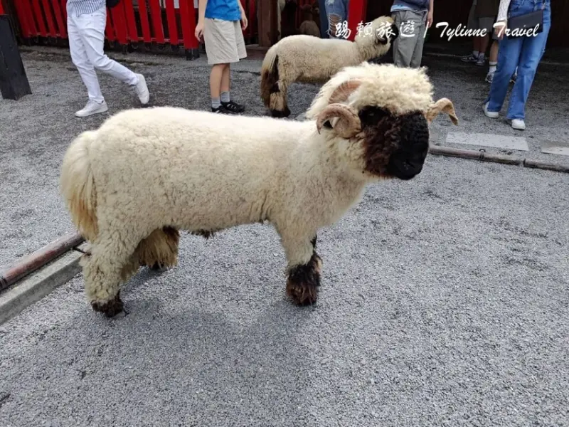 餵完梅花鹿之後旁邊就是來自瑞士的「瓦萊黑鼻羊」,也就是卡通「笑笑羊」的角色原型