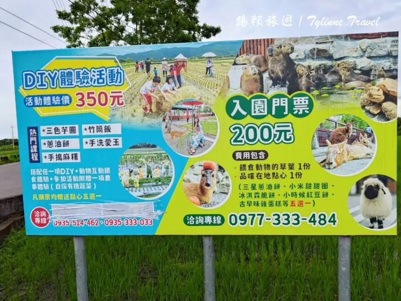 入園門票的基本費用是200元,裡面會有「餵食動物的草葉1份」和「品嚐在地點心1份」,另外還有350元的門票可以選,在進去參觀前可以先體驗手作課程