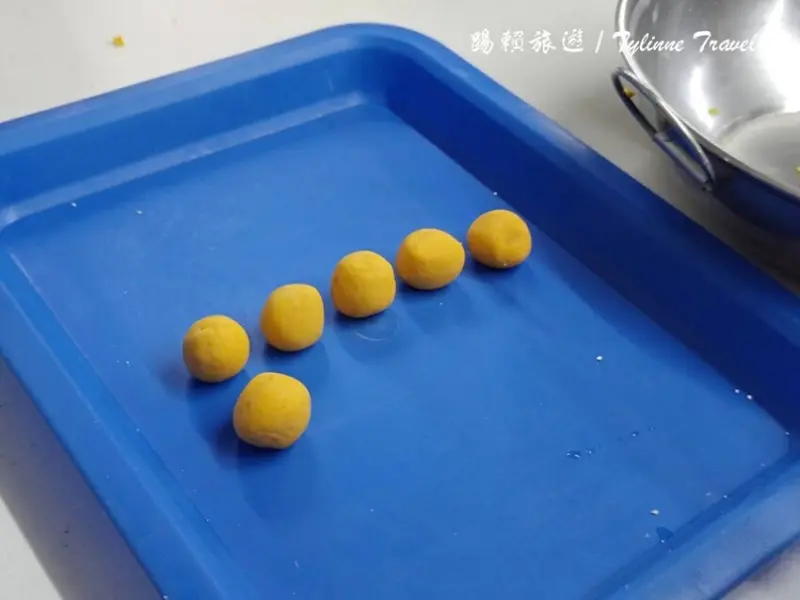 一直到整個麵團成形後就可以把芋圓一顆一顆捏出來