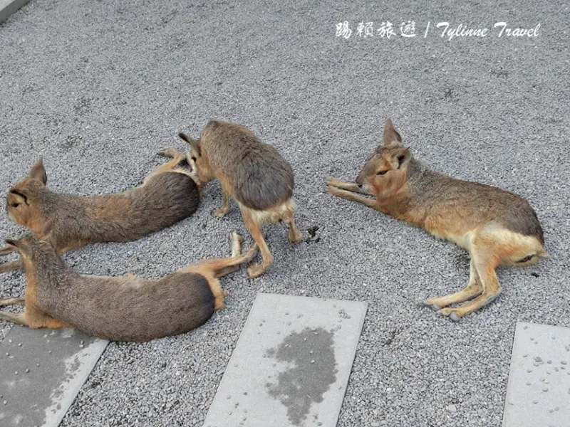 下面這群是「巴塔戈尼亞豚鼠」,好幾隻一起躺在地板上休息,懶洋洋的樣子十分愜意