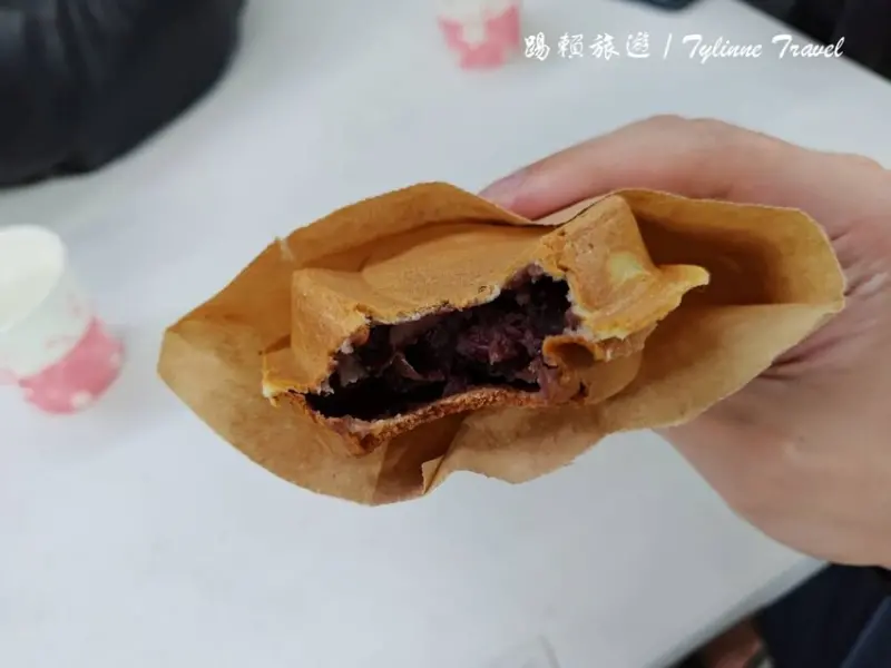 第二個是「人氣車輪餅」,口味是選擇紅豆的,裡面的內餡滿紮實的可以明顯吃到紅豆飽滿的口感