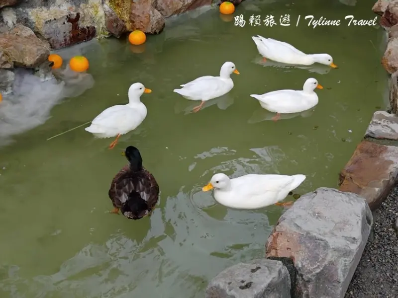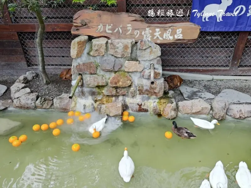 最後面一區還有另一個露天風呂是給鴨子泡溫泉的地方,看到有人靠近也會成群游過來討食物吃