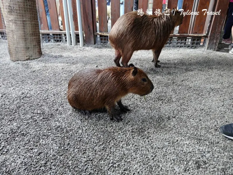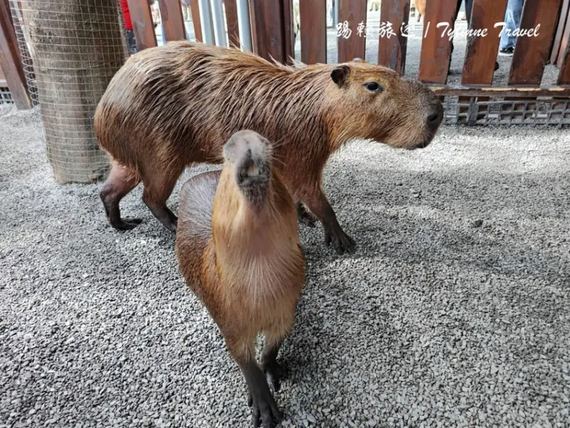 在後面有一小區圍起來是「水豚」也是台灣很愛講的「卡皮巴拉」,看起來真的呆萌呆萌的