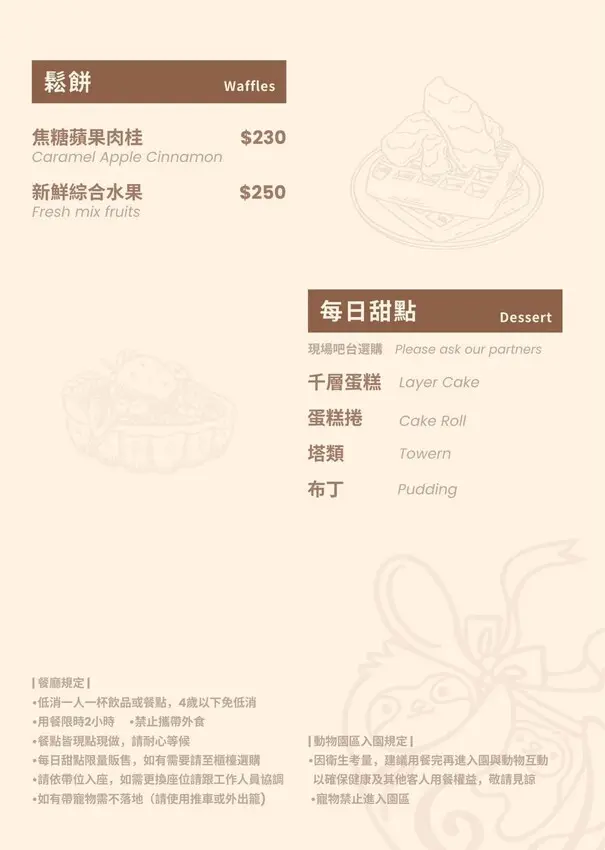 前面都是針對原址的農場地點介紹,現在搬到新的地點後與「樹懶餐廳」合作,如果入內用餐可以折抵門票費用,加上新的農場面積比原有的大上10倍,小動物也比之前的還要多,可以一待就是半天以上
