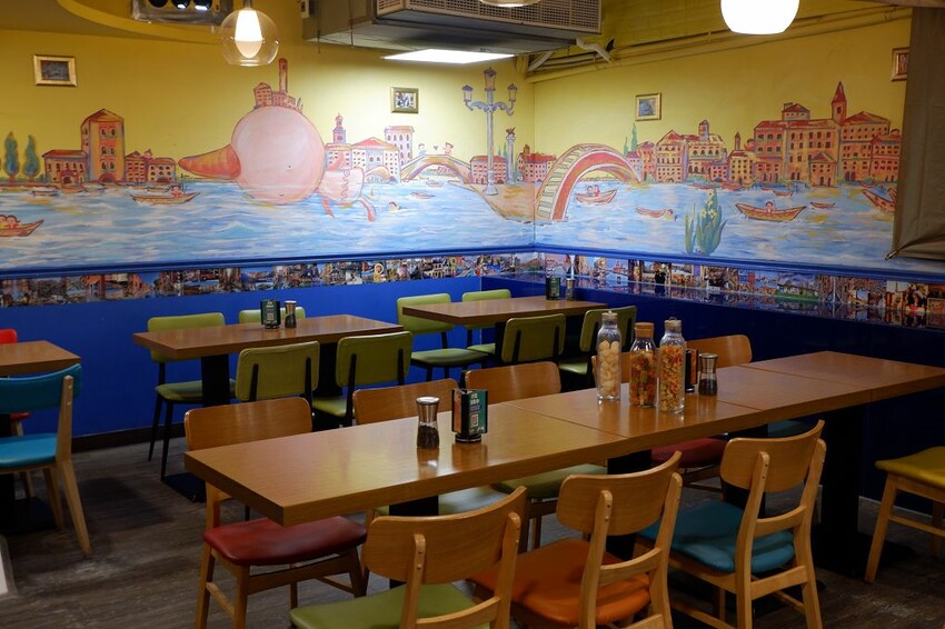 一走進餐廳,眼睛都要亮起來了,牆上繽紛的彩繪,是可愛又浪漫的威尼斯風情捏,感覺自己瞬間移動到威尼斯的河畔,坐在那邊吃大餐一樣。
