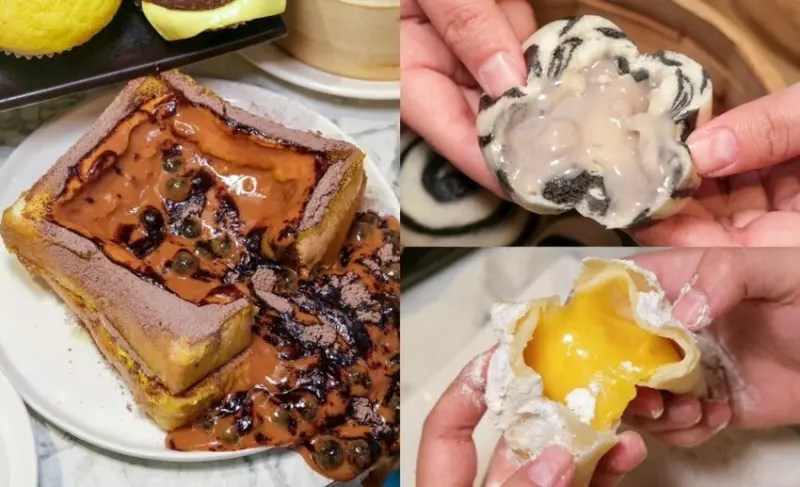 在Threads上爆紅的珍珠漏奶華就是這家 ! 台北東區人氣港式【荷李活茶街 HOLLYWOOD STREET】,在Google擁有4.6顆星,高達四千多則評論,無論平假日都人潮滿滿滿,餐點種類選擇多元,有各式燒臘、港點和粥品、煲類、撈麵、炒飯等,其中必點的這款珍珠漏奶華,超浮誇的流心像瀑布般流出,甜點控們絕對不能錯過!