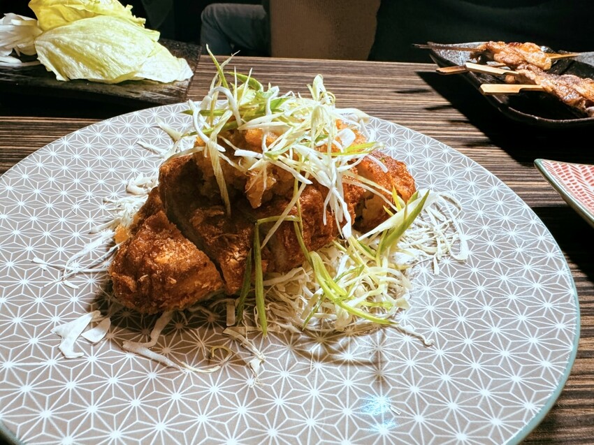 肉質特別細緻,入口即化的口感與層次分明。經過油炸處理,外層變得酥香,咬下一口,一度以為是日式炸豬排,竟然有肉香味。