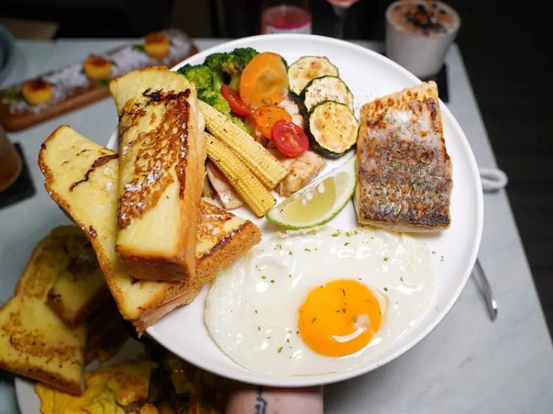 「香煎海鱸魚早午餐盤」是使用新鮮去骨鱸魚菲力去香煎,魚肉細緻又多汁,重點是完全沒腥味,擠點檸檬就很好吃了!不愛吃沙拉,這裡也可以換成香煎時蔬,而且份量也是超多,雞蛋可選全熟煎蛋、荷包蛋或是炒蛋,這點很加分!整盤兼具營養及美味,也好適合有在健身的朋友。